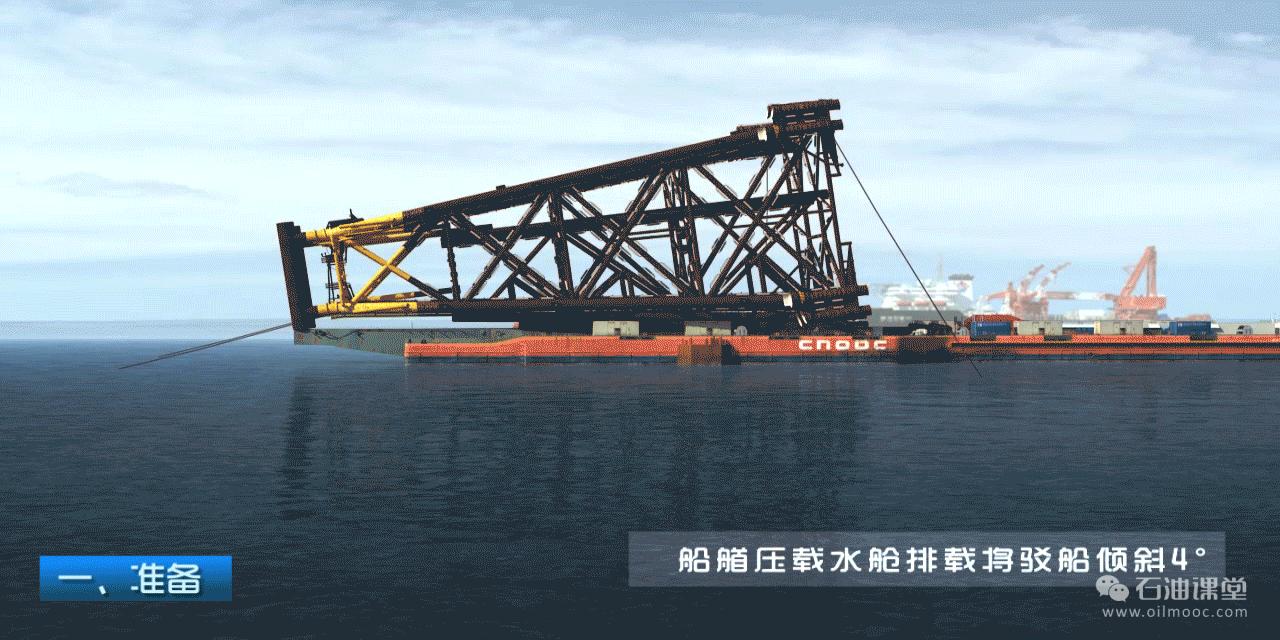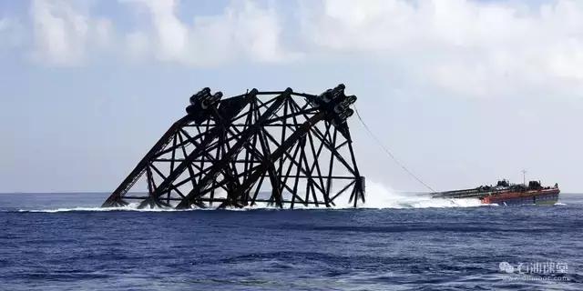 海洋平台的安装需要安装导管架后将平台组块与其对接。导管架可以通过滑移入水的方式来定点安装。 f9 p! g, F3 [, p# P5 V* ]8 ~