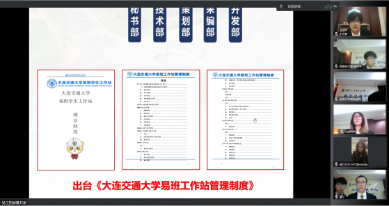 会上,两校易班学生骨干分别做了本校易班建设经验分享及交流全国高校培训班学习心得;我校易班站长团成员徐可欣从“如何加强易班工作站日常管理制度”这一主题进行交流发言,站长团成员么奕森从“围绕易班功能如何开展大学生喜爱的校园活动”进行经验分享,站长团成员陈鹏从“发挥易班优课实效打造一站式学习平台”进行技术分享;大连海洋大学易班工作站站长齐子琛也为大家详细介绍了大连海洋大学易班组织结构和各部门,以及组织内各部门间合作交流,如何提升工作效率。 % T7 ]0 {- y% i8 V! }5 N- H