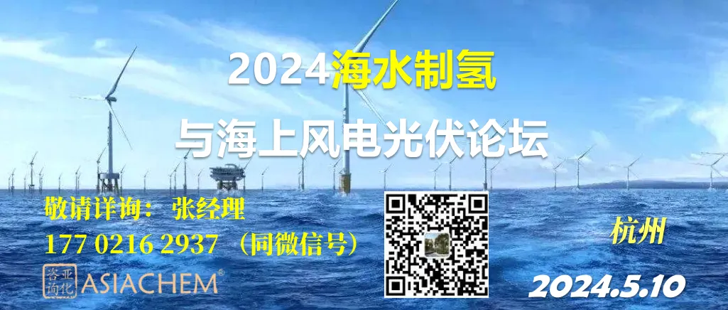 2024海水制氢与海上风电光伏论坛将于5月10日在杭州召开,会议将探讨全球海上风电/光伏制氢技术与投资趋势,海上风电光伏、海水淡化和碱性/PEM制氢一体化示范项目与运行经验,海水直接电解制氢-海水预处理、电解槽材料体系与长周期稳定运行,海水无淡化原位直接电解制氢技术与示范,海上制氢与绿色甲醇、绿氨的耦合发展,海上能源岛概念设计与实践经验等。( E, B5 j* s6 E