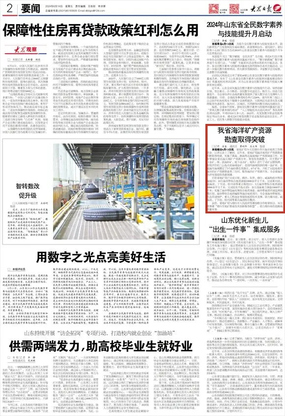 本报烟台6月13日讯 省地矿局今天在烟台召开海洋地质工作推进会。记者从会上了解到,近年来,省地矿局海洋地质矿产资源勘查不断取得突破,实施了黄海、渤海等近海海域矿产资源调查工作,初步掌握全省近海区域矿产资源分布、类型及资源潜力,对主要矿产(金矿、煤、滨海砂矿、地下卤水矿、地热)进行了成矿远景预测。发现评价的三山岛北部海域金矿,是国内海域探获的唯一金矿床,在威海市海域圈定了5个海砂潜在资源区、6个矿体,开拓了从陆地走向海洋的矿产资源勘查第二空间,服务海洋矿产资源开发,为全省海洋经济发展提供资源保障。 0 R+ v6 P0 j# P5 R; K8 D6 p