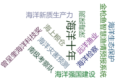 ! w- d8 e2 x5 W& J, r  数据来源于海洋类新闻网站中近一周的词汇热度统计快讯速览【海洋政务】◆中国代表团出席第九届“我们的海洋”大会◆联合国海洋十年“海滨之城”平台正式启动◆2024年度全国海洋灾害预测会商会举行◆青甬舟三地加强海洋公益诉讼协作【海洋产业】◆我国海上第一深油气井投产◆国家能源集团与中集来福士签约【海洋科研】◆南海所完成4000米水域深海大型海洋动物监测研究首个监测研究航次◆西工大仿蝠鲼柔体潜水器对南海开展珊瑚礁监测◆我国科研团队在深海探测领域获新突破◆我国首个金枪鱼智慧渔情预报系统发布◆我国发布全球首个海底智算中心平台【学术论坛】◆海洋战略与闽台海洋人才培养学术活动举办◆第三届中国国际牡蛎产业高峰论坛举行◆黄(渤)海湿地与水鸟保护研讨会在青岛召开◆2024(第九届)国际海洋防腐与防污论坛召开