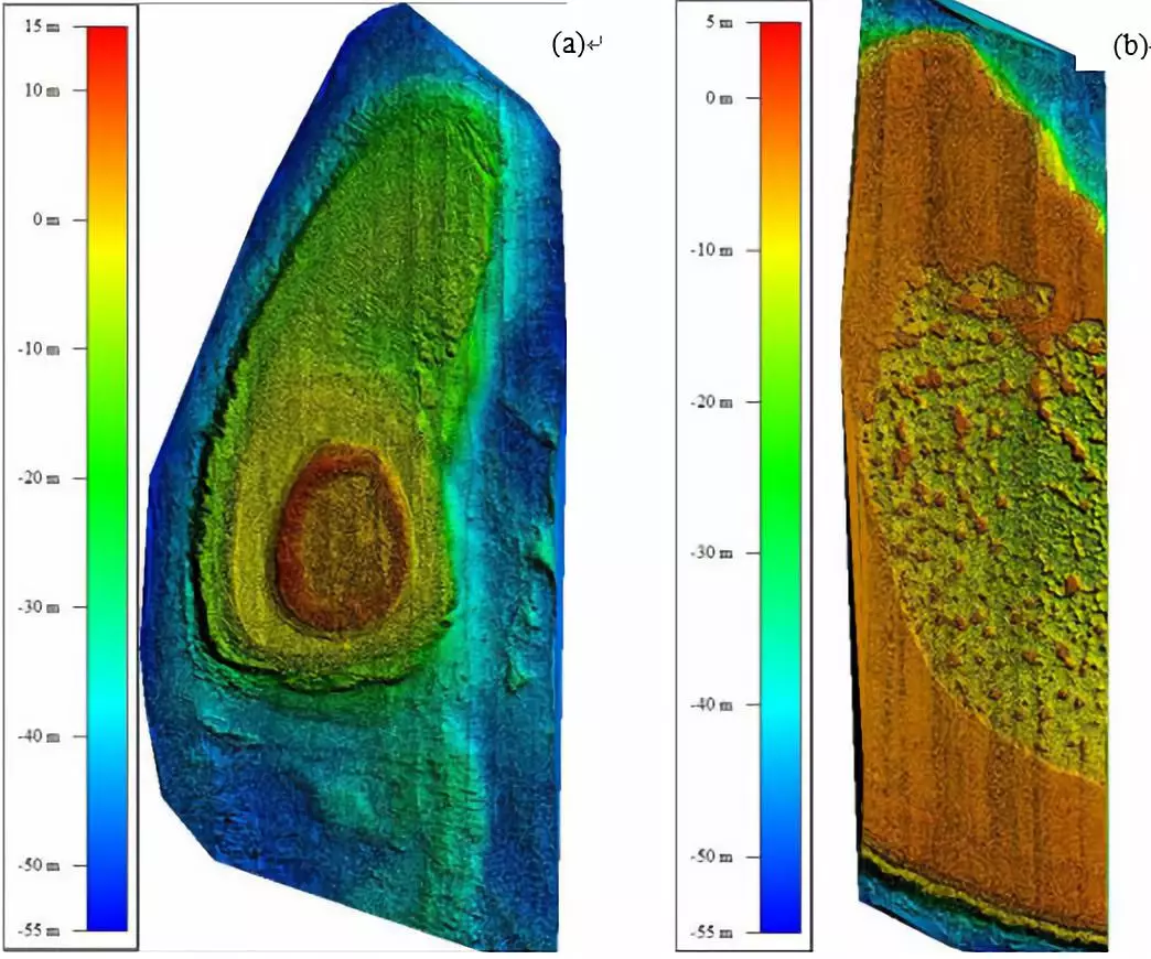 * m! _' ?2 s( _ 图3 海岛(a)礁(b)DEM图