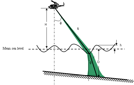 ) B3 N. L' ^) H' _. H" @* O: V# m( R/ p 图1 机载双频激光雷达测深原理 ) m5 A* v- e2 t2 H1 P) ^