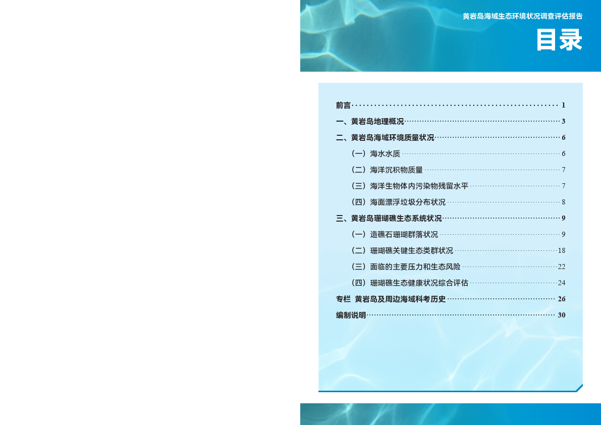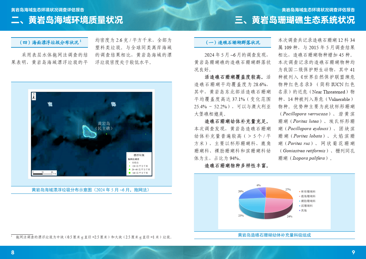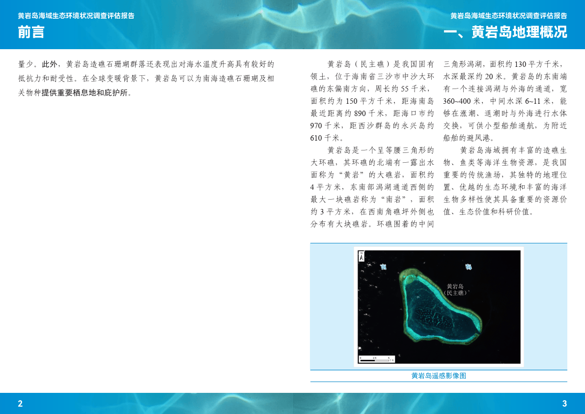 0 f- [8 I) Y, u; O, q$ E 今天分享的是【黄岩岛海域生态环境状况调查评估报告】 报告出品方:生态环境部华南环境科学研究所