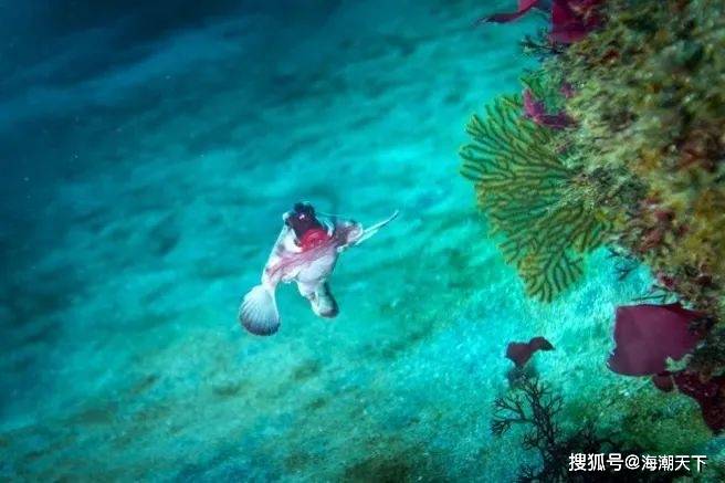 这个是红唇蝙蝠鱼,也是加拉帕戈斯群岛的特有物种,特殊的是它有四条“腿”(它的胸鳍),这种奇特的鱼类更多的是在海底爬行。摄影:赵宇 ; I9 j- f2 }5 @5 B: Y
