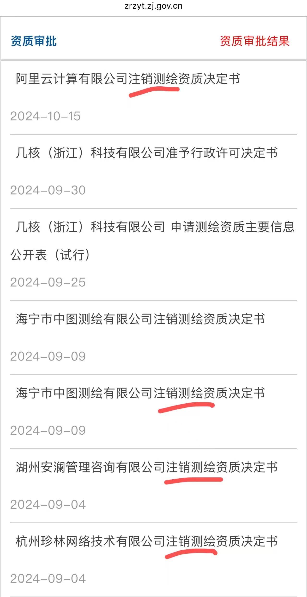 4 f) C2 ~- s7 t 除了阿里云外,全国各地有多家公司申请注销了测绘资质。以往的时间也均有公司申请注销测绘资质,而不是只存在10月。 , ~1 Q6 b4 d; Q* j) z6 m7 y# ?