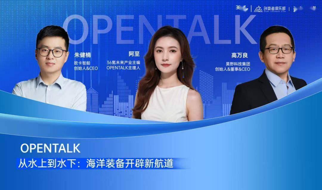 2025年12月17日,36氪举办了以「从水上到水下:海洋装备开辟新航道」为主题的OpenTalk直播活动,特别邀请欧卡智舶创始人&CEO朱健楠、昊野科技集团创始人&董事&CEO高万良作为本场分享嘉宾,两位就智能船舶、水面无人驾驶系统、水中装备、水下推进器、新能源船舶动力系统等热点话题展开了深入分享,并与观众进行了在线互动。