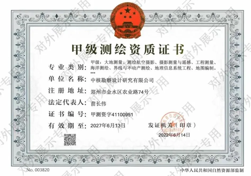 中核勘察着力落实公司党委“补链-扩链-强链”要求,今年4月,根据战略规划和资质建设计划,测绘地理信息院启动了甲级测绘资质“大地测量”子项的升级工作。通过精心准备相关业绩证明、全面梳理仪器设备资料、深入复盘查漏补缺等大量细致的工作,最终成功升级子项资质。