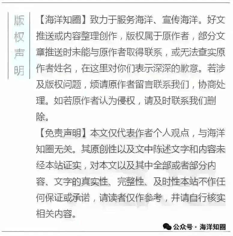 转载请注明信息来源及海洋知圈编排。 6 f2 R! [# ]! W6 s