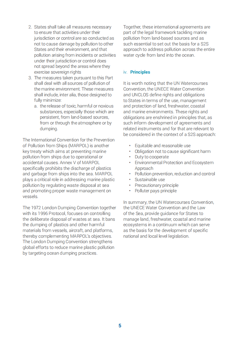 2026年IUCN发布的这份报告,提出以“源至海”(S2S)整体化方法应对海洋塑料污染,剖析了该方法在全球、区域、流域、国家和地方各治理层面的政策、法律与制度现状,指出当前治理短板并给出针对性实施建议。报告指出,海洋塑料污染源于陆地,经河流等水系进入海洋,涉及跨生态系统、跨行政边界的复杂问题,而现有治理多存在条块分割、生态系统关联性考量不足等问题,S2S方法因兼顾生态系统物理联结、利益相关方相互依存及多重动态因素,成为应对该问题的适宜路径。 & g2 N3 E# X. j; \/ \( u: {