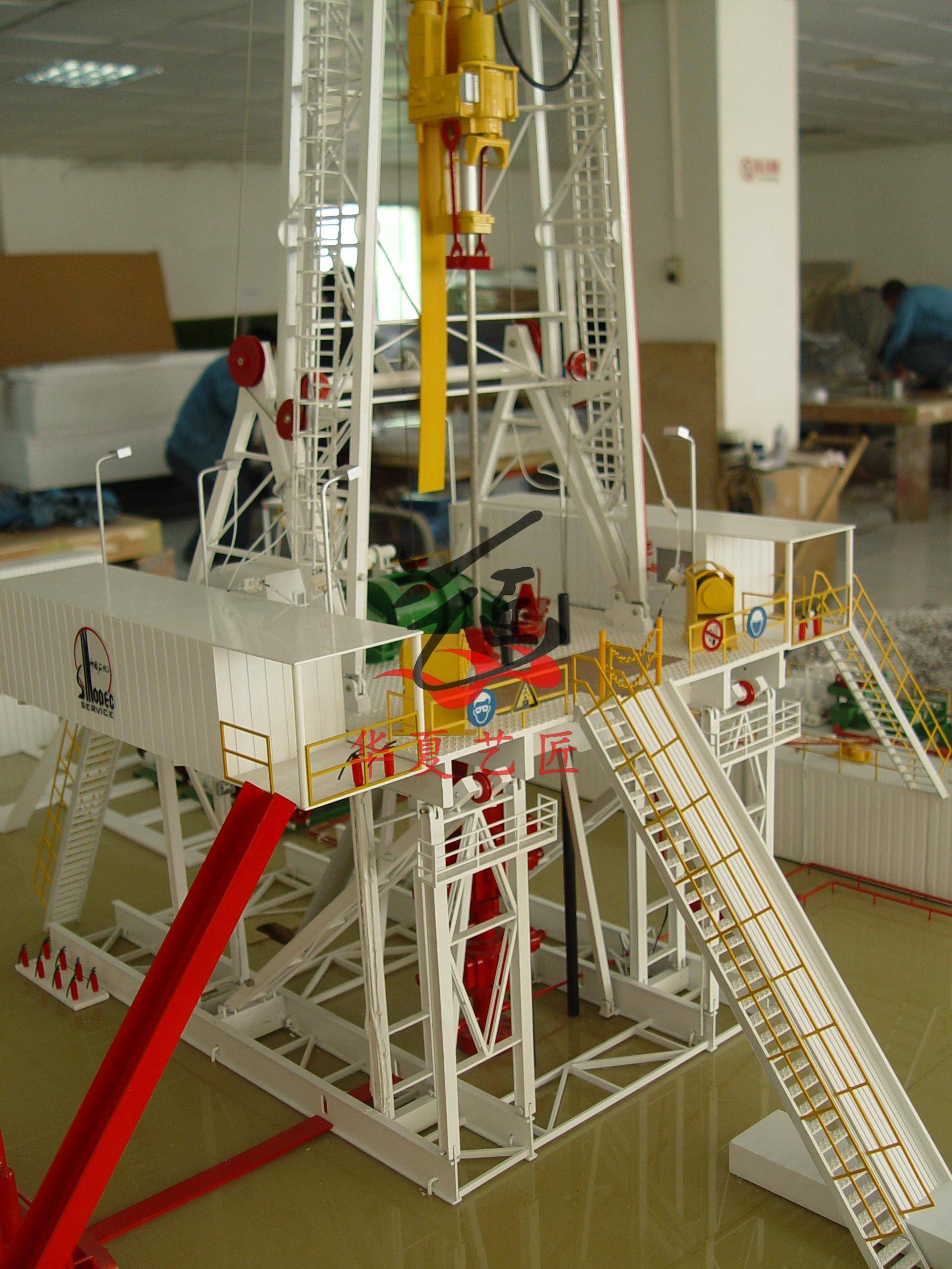 ) H/ D! h4 M; s 北京华夏艺匠模型科技有限公司的主营产品涵盖油气开采全链条,形成五大核心系列:油气开采作业仿真模型以1:100比例还原陆地钻井场景,包含钻机、泥浆泵、防喷器等30余种设备,支持钻井工艺流程演示;石油开采设备模型聚焦抽油机、分离器、计量装置等单体设备,采用工程塑料与金属材质,确保结构强度与耐腐蚀性;海洋钻井平台模型按实际平台类型分为半潜式、自升式两类,高度可达2米,配备可升降钻井塔与动态防波堤模拟装置;钻井泵模型通过透明外壳设计展示内部齿轮、活塞运动原理,配套压力传感器实现流量数据可视化;油气储运模型构建包含管道、储罐、泵站的完整系统,支持多级压力控制与泄漏模拟,广泛应用于安全培训与应急演练。 3 i9 @) ~! j2 {0 d4 L