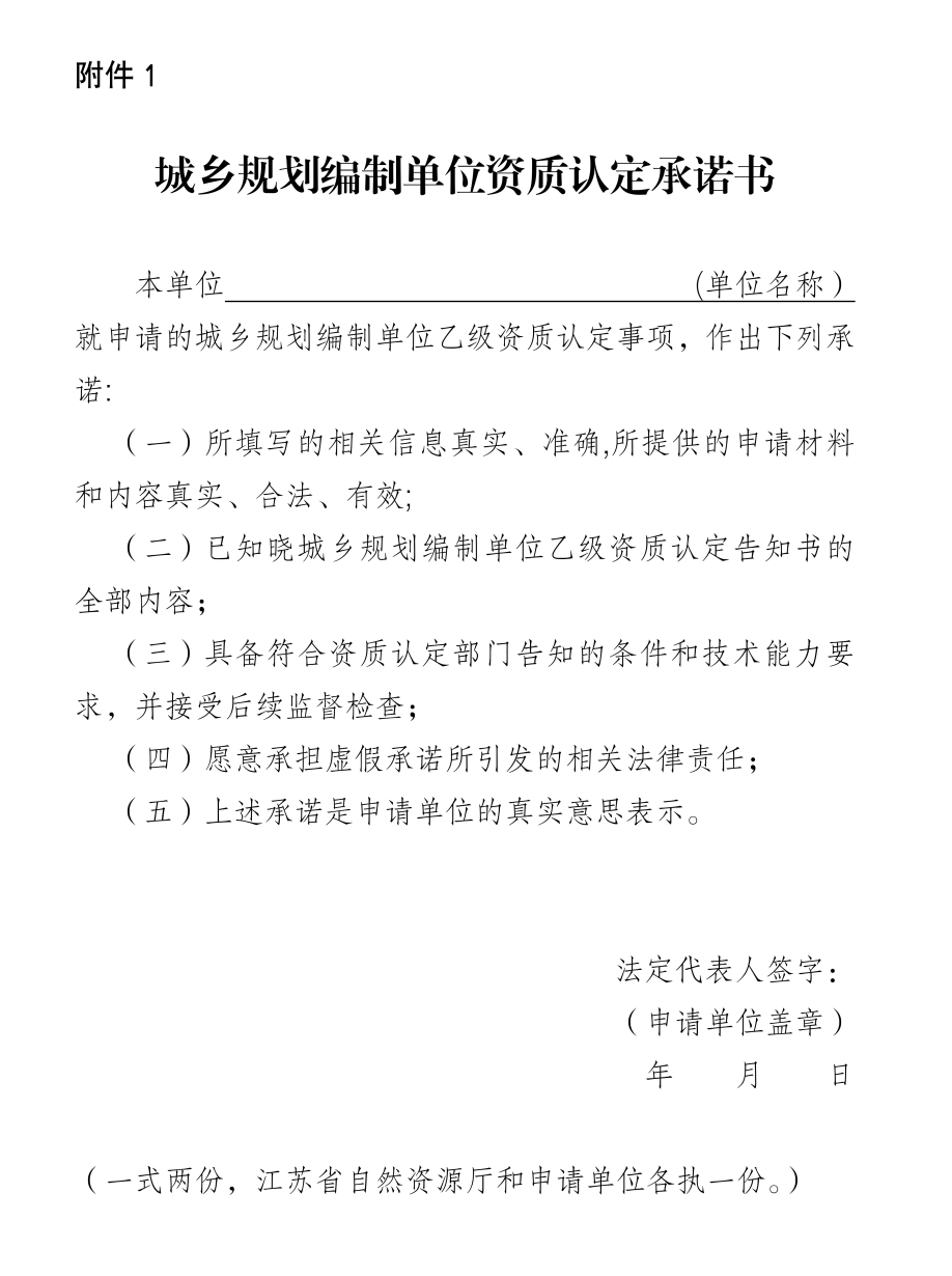 1.城乡规划编制单位资质认定承诺书 2.江苏省设区市自然资源主管部门属地核查联系方式  E; r, G+ d1 o6 K2 p