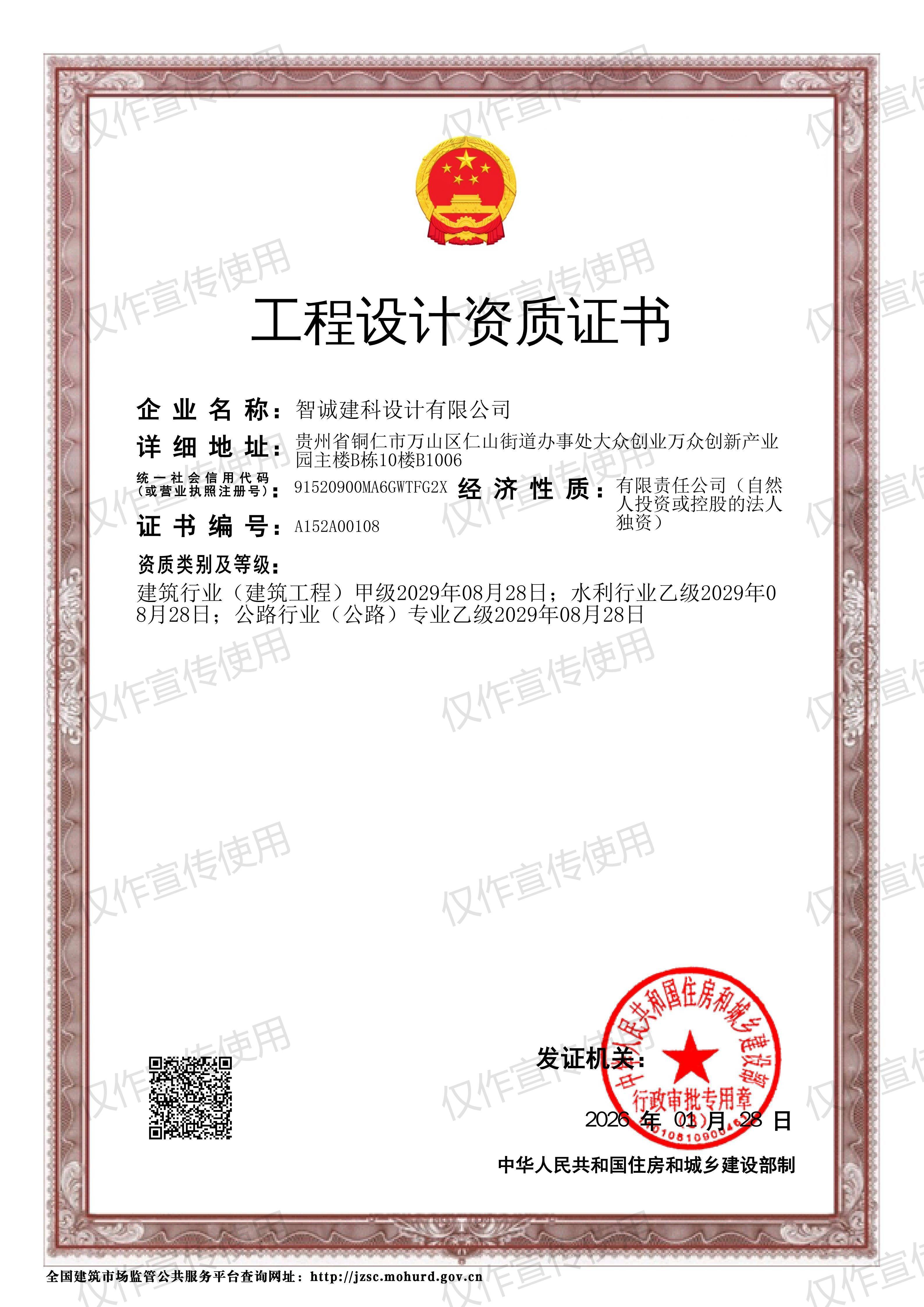 # X) h4 ]. x; |' R5 h/ y. n 智诚建科设计有限公司凭借完善的甲级资质体系、深厚的大型项目业绩积累、全流程的设计服务能力,在全国建筑设计市场形成了强劲的核心竞争力。未来,随着我国建筑行业向高质量发展、绿色化、工业化、智能化转型,完善的资质体系与丰富的业绩积累,将继续为智诚建科的发展提供坚实支撑,推动公司在建筑工程设计领域持续深耕,为行业发展与城乡建设贡献更多专业力量。