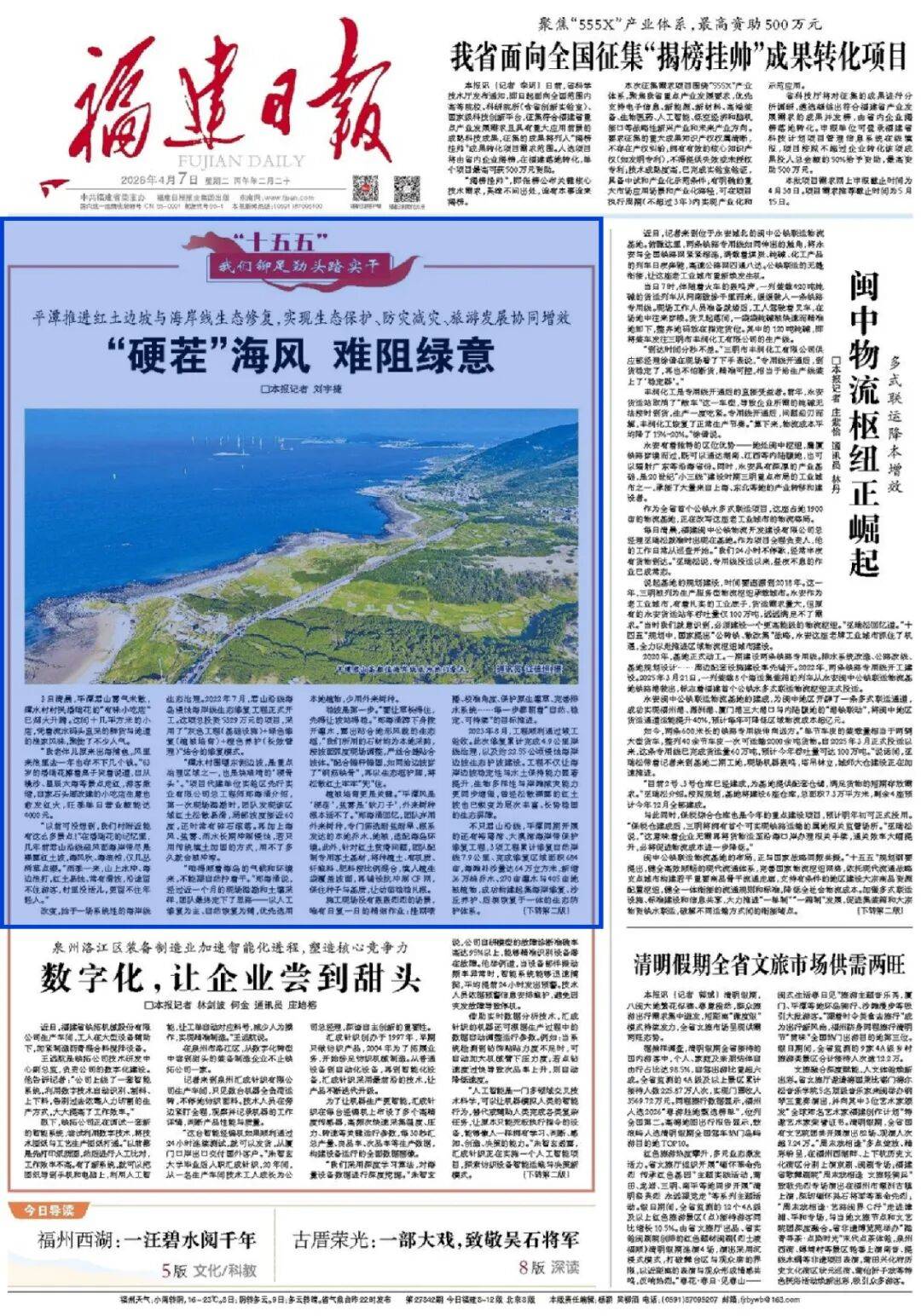 , S( I5 B# C, \1 v 《福建日报》头版头条刊发 7 l) L- z+ V0 g1 ^) @) I