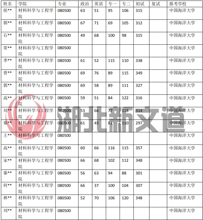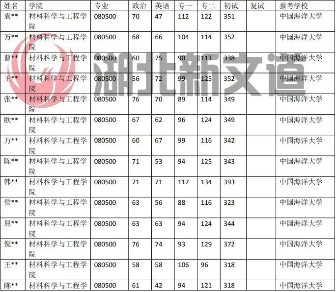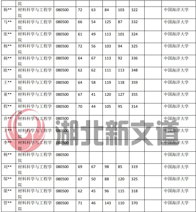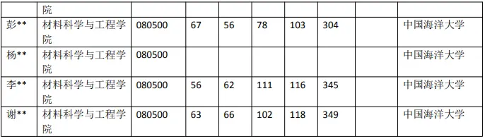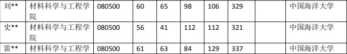 / {3 Q+ o+ X# h% X 以下数据基于中国海洋大学 080500 材料科学与工程专业获取