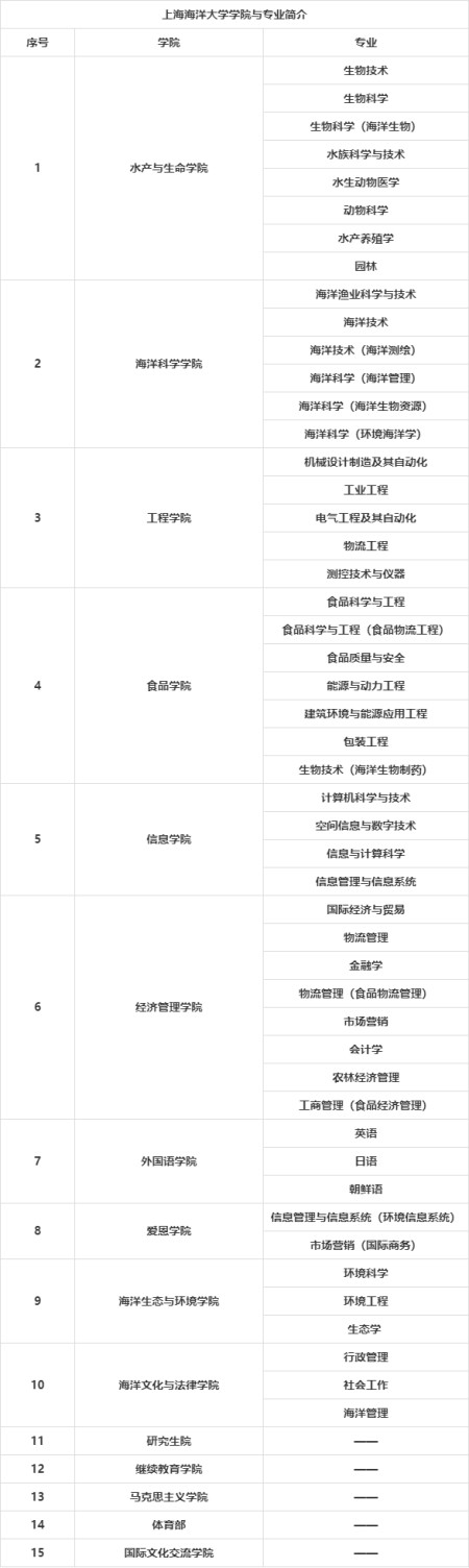 $ Z, a& o" y# ~' q# H) e2 P 【三、、上海海洋大学学院专业推荐】: . U. h5 J! {. s6 c2 h9 p7 F# r4 h: F