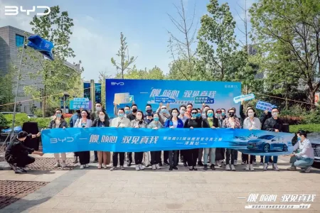 1 [4 ]% R' h# i3 h2 u2 p 一“舰”倾心,驭见真我。26日,《第一车道》来到天津,参加了比亚迪驱逐舰05媒体品鉴寻真之旅——津冀站,试驾了这款最新上市的驱逐舰05。