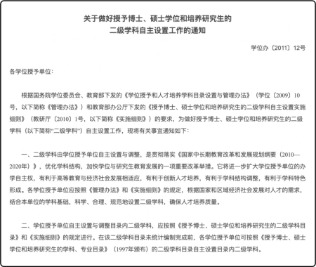 教育部下发的关于各学位授予单位自主设置二级学科的通知