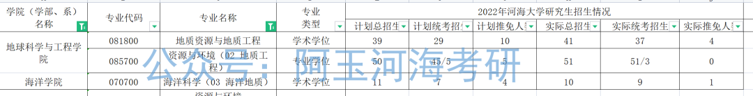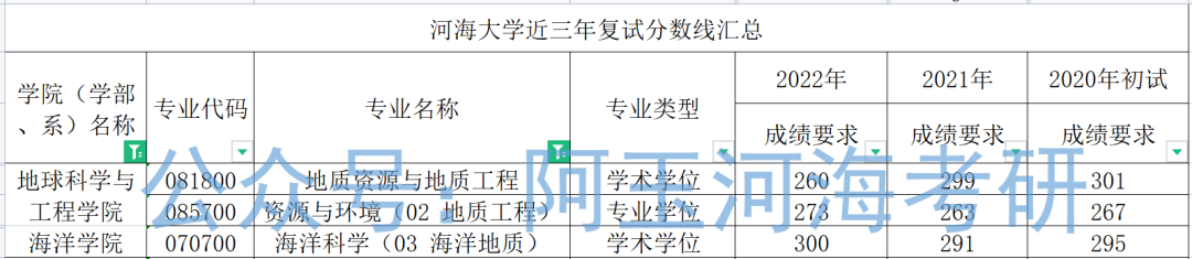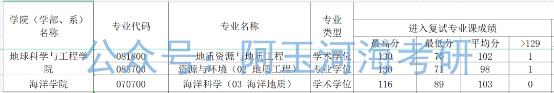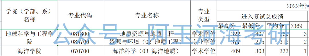 上图为地球科学与工程学院、海洋学院三个专业的22、21、20年的复试线。