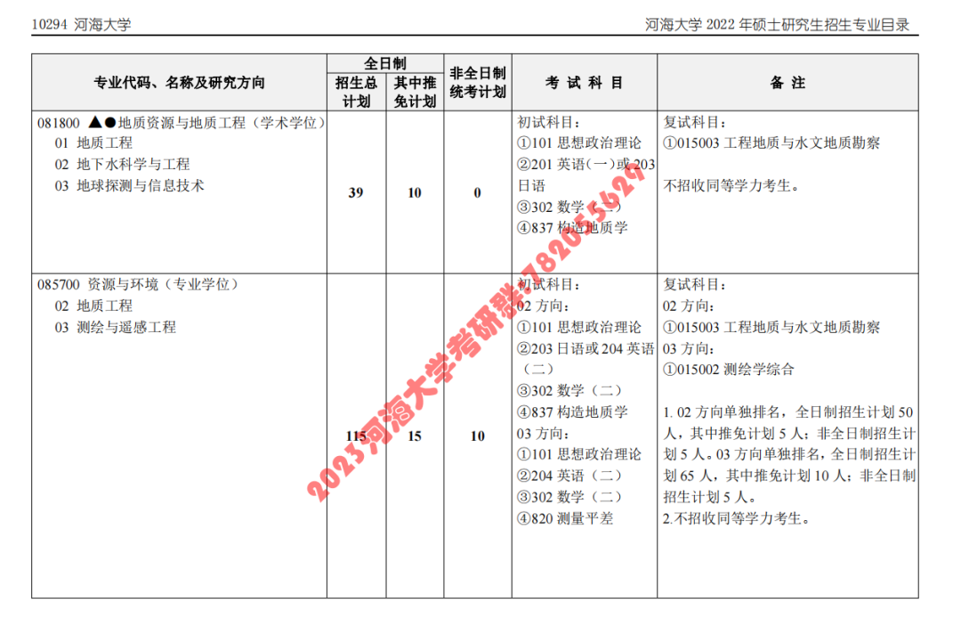 ( W9 a) Z2 t2 G ~ 海洋学院、地球科学与工程学院学院初试专业课为837地质构造学的专业有081800地质资源与地质工程(学术学位)、085700资源与环境(专业学位)、070700海洋科学(专业学位)。各专业方向、初试科目、复试科目等相关内容如下图所示: