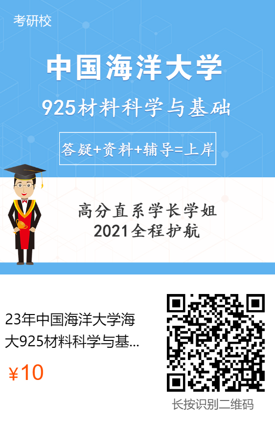 5 Q/ X0 X q; o K+ w; J- a2 b6 T 中国海洋大学材料与化工专业2020级,双非本科一战成硕。对专业课的考点把握精准,其编写的材料科学基础红宝书结合了学长在备考过程搜集整理的资料及备考笔记,经过一个多月时间才打磨完成。 5 @7 i" t: A" p9 j) W( l6 u
