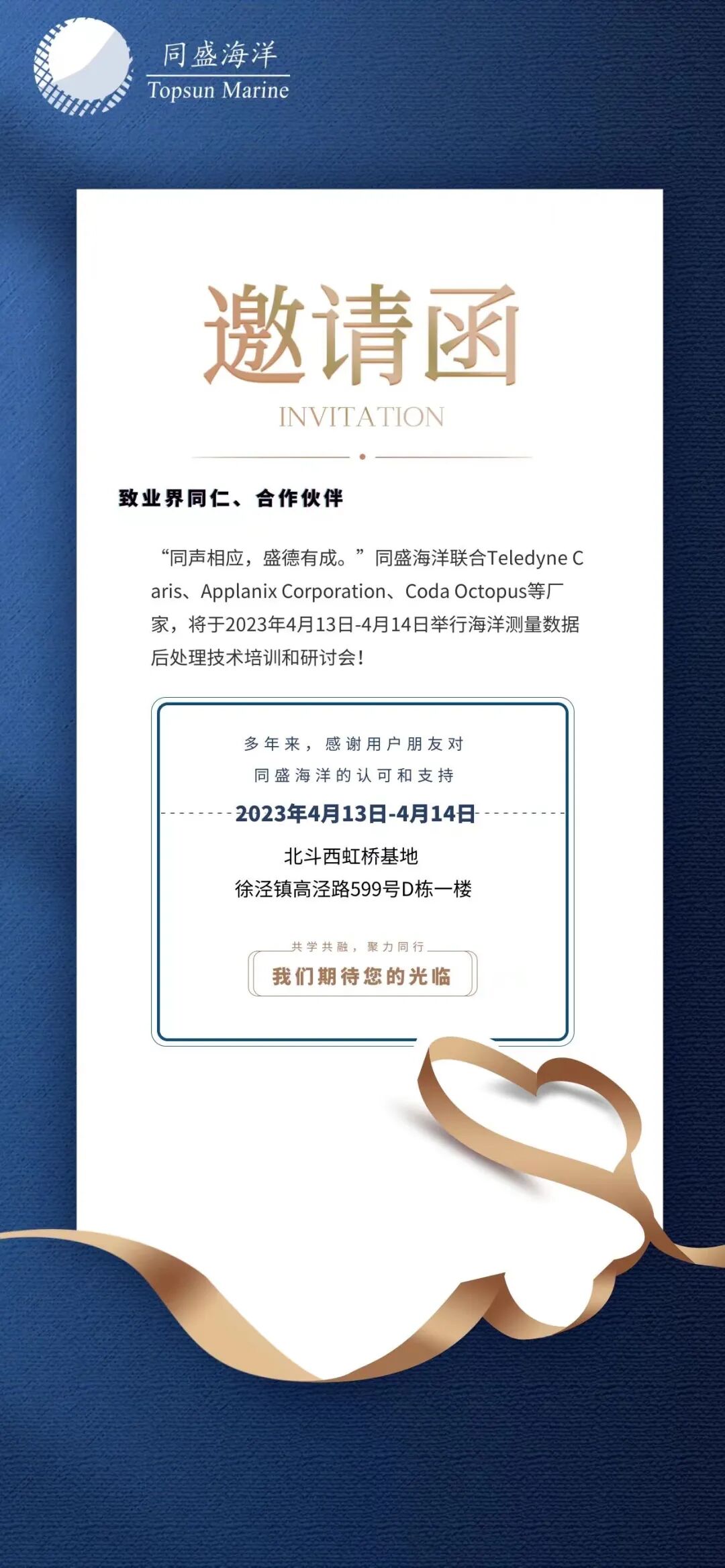 5 Q9 A \! l- y4 z “同声盛德杯”首届海洋测量数据后处理软件技术研讨会报名通道已经开通,报名时间截至2023年4月10日。联系电话:韦赞 18817590912 2 [2 P0 |& X, D$ Q