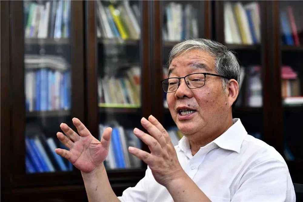 中国海洋大学教授董双林介绍在黄海冷水团利用“深蓝1号”养殖三文鱼的技术攻关情况。