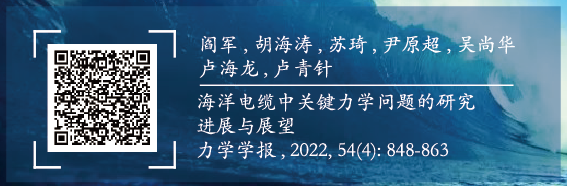 首先,在海洋能源开发装备中,连接装备需要承受海洋环境中恶劣的波浪、海流、深水高压、介质温度以及长距离传输引起的自重等荷载,极易发生结构失效。因此针对此类装备力学问题的研究一直是海洋能源开发领域研究的热点。其中连接于海面和海底装备之间的海洋电缆是能源传输、生产控制的关键装备,被誉为海洋能源开发的“神经线”。本专题组织了一篇海洋电缆中关键力学问题的综述,由大连理工大学海洋装备强度分析与创新设计团队完成。围绕海洋电缆多构件、多层螺旋缠绕的结构特点,全面总结了海洋电缆结构设计、分析及测试领域关键力学问题的研究进展,揭示了该领域的主要研究方法和关键技术难点,并展望了未来发展的主要技术需求和热点方向。
