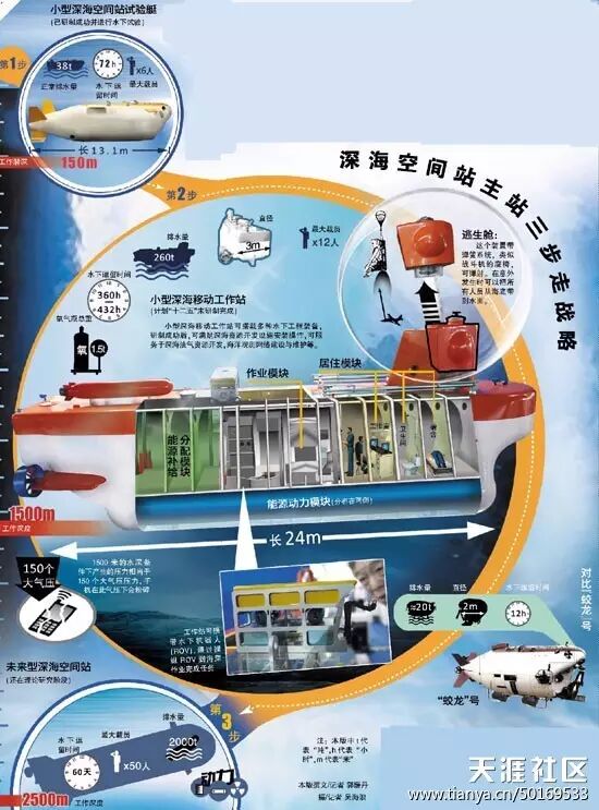 深海移动工作站将主要用于进行海洋科学探索,被喻为海洋里的“天宫一号”。中船重工七零二所所长翁震平介绍,如果把“蛟龙号”比作神舟飞船,这个实验型深海移动工作站就相当于载人航天的目标飞行器天宫一号,它是中国未来深海“空间站”的雏形。 + h v. c+ c) i' ?1 I) [