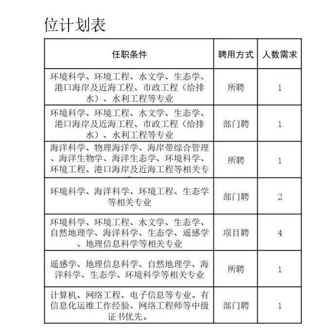 5.尚未解除处分或正在接受纪律审查的人员、以及刑事处罚期限未满或者涉嫌违法犯罪正在接受调查的人员不列入报名范围。 招聘岗位名称、职责、人数及任职条件见下表。