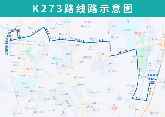 K273路由济莱高铁历城站开往地铁丁家庄站。沿途设置济莱高铁历城站、凤集路潘田街、凤鸣路金口街(路东)、金口街凤鸣路(路南)、凤鸣路莲岳街、凤鸣路潘田街、凤鸣路芙蕖东路、田庄西、临港南区、兴港路凤歧路(路北)、凤歧路兴港路(路西)、兴港路中段、兴港路凤山路、长岭山南路凤山西路、长岭山南路凤凰路、舜风路凤凰路、舜风路舜旺路、颖秀路舜风路、颖秀路新泺大街、天辰路颖秀路、天辰路舜华路、天辰路崇华路、天辰路天泺路、天辰路大辛河西路(路北)、地铁丁家庄站(路东)、工业南路正丰路(路南)、电子机械工程学校(路西)站点。(山东商报·速豹新闻网记者 白鑫燚)详情: 明起,济南K273路公交开通试运行 最新进展!事关济南轨交4号线 按照济南市轨道交通整体施工部署,计划自2023年4月13日22时起对轨道交通4号线一期工程经纬区间(经七路西站—纬十二路站)进行围挡施工,为确保道路交通安全、有序,现将施工期间周边交通组织方案公告如下: 本次自2023年4月13日起至2023年9月13日,共5个月,分四期实施新建导改道路及经纬区间锚索处理施工。一期、二期施工占用经十路北侧部分慢行道路空间和机动车道,经十路车道数及通行方式保持不变,非机动车、行人沿两侧通行。 三期施工占用经十路南侧慢行道路空间和右转机动车道,经十路(阳光新路路口)西口由双向11车道改为双向10车道,非机动车、行人沿两侧通行。 四期施工占用现状阳光新路西侧人行道及2条机动车道,阳光新路车道数及通行方式保持不变,非机动车、行人沿两侧通行。