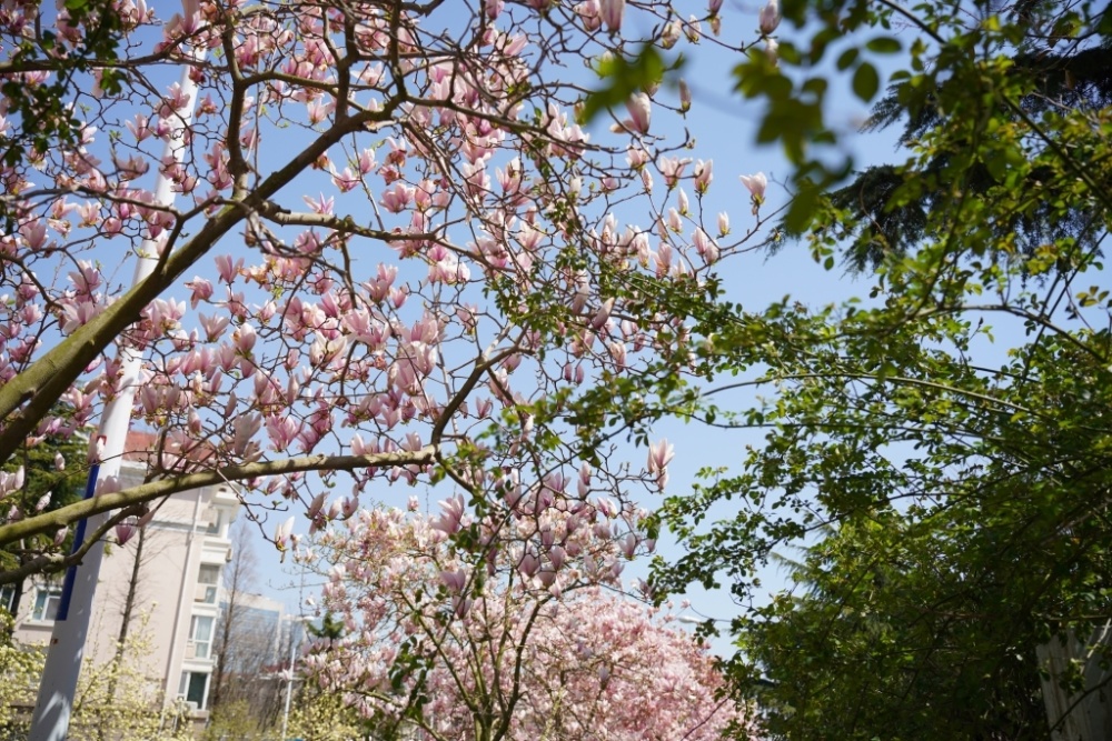 海宁路上的玉兰 春季的海宁路是玉兰盛放的季节,背靠嶙峋大山,通向蔚蓝海岸,长街两侧都是玉兰,白色的纯净、粉色的靓丽、黄色的淡雅,花香馥郁,从北向南,直通海边,浪漫至极。