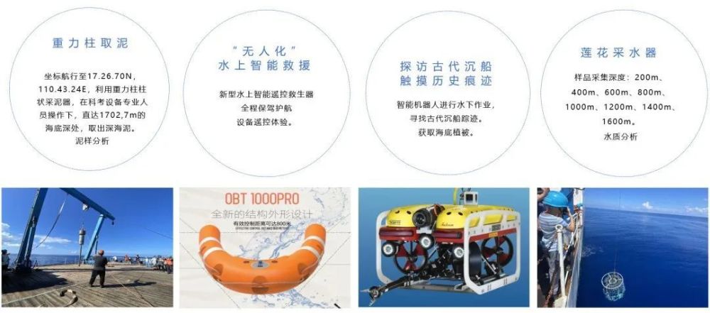 ?2 跟着科考队员同吃同住一起工作和娱乐的日子 使用专业海上科研设备取样和实验,通过深海取水,重力柱取深海泥等活动,身临其境地感受中国科学家海上工作的环境;也能见识到利用浅剖仪器或多波束进行海底地形测绘,华光礁海域利用ROV水下机器人寻找古代沉船遗址,深度了解国内外前端领域的科考装备,让公众有机会走进“贵族学科”——海洋科学。