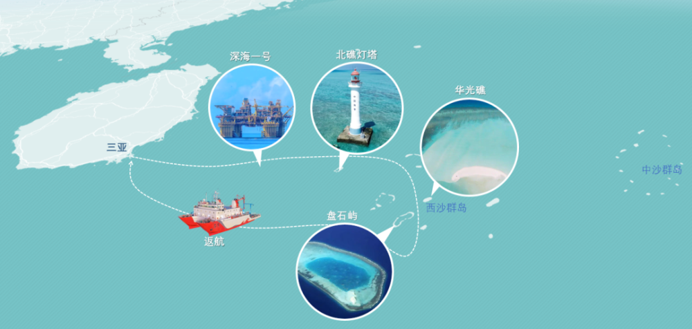 「行程线路」 DAY.1?三亚起航,科考船安全知识培训 国内/三亚,下午前往三亚救助局码头(16:00登船)、科考活动说明会 DAY.2北礁海域 国之重器海上基地物资捐赠 助力海洋强国建设 西沙鱼群知识讲座&海钓体验 巡游并登陆北礁灯塔/升旗仪式 船上攀爬训练 DAY.3?华光礁海域/盘石屿海域 海上日出观测&摄影 巡访古代沉船寻找宋代瓷器 盘石屿海域海洋生物资源考察 岛礁环保拾荒活动 海丝文化交流晚宴 夜观璀璨银河星空 DAY.4盘石屿海域 海上科考专家课堂? 海上经典科考活动(取水、取泥)? 南海丝路海底地形测绘? 船长欢送晚会/颁发科考证书 DAY.5抵达三亚,返航三亚救助局码头 注:室外活动部分,如遇天气问题,部分行程将做适应性调整或删减。