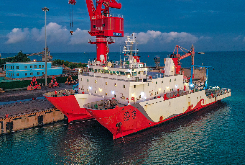 ?NO.1? 「沈 括 号」科 考 船 “沈括”号--国内为数不多的小水线面双体型科考船,是专为万米级载人潜器打造的科考母船,具备全球顶尖的科研设备。 以古代科学家“沈括”命名,是为了弘扬沈括科学家探索的精神,助力实现中国海洋强国梦。 服役至今,已执行几十余次大洋航次任务,是海洋科考领域不可或缺的中坚力量。 作为国家船队的一员,“沈括”号为祖国的深海科考贡献着自己的力量。 其双体设计和高性能减摇鳍的设计能够很好消除海浪影响,为海洋科考搭建一个非常稳定的平台,被新华社誉为“海上晕船者的福音”! 沈括号船舶参数: 总吨位:2194吨 续航力:10000海里 总长:63.00米 型宽:23.00米 设计/服务速度:12/10节 载客人数:36人 (不包含船员) 自持力:60天