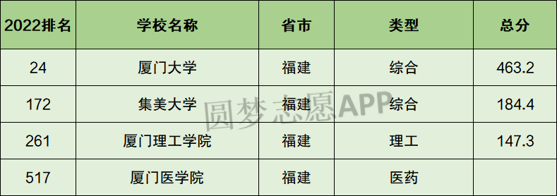 一、厦门市最新本科大学排名一览表 根据软科2023年中国大学总榜排名可知,厦门市内有4所本科大学进入全国大学前800强,这些大学均是厦门市内乃至全国都比较强的大学。具体入选名单及排名如下图:
