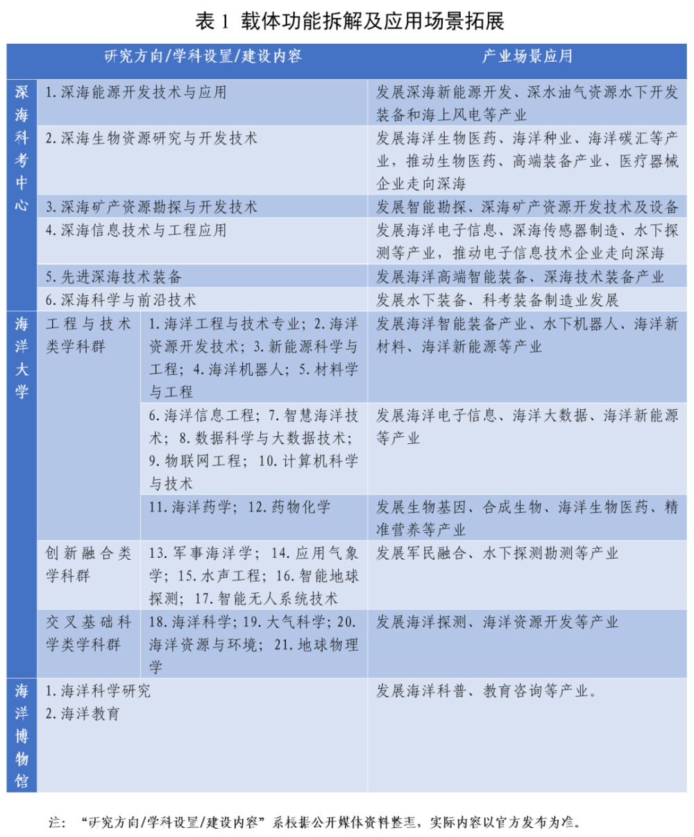 02 创新驱动,研以促产,以高质量协同生态赋能区域高水平创新 一是聚焦前沿基础科技,搭建高水平的创新平台体系。发挥海洋大学、国家深海科考中心及海洋博物馆的平台作用,联合国内一流高校、科研院所、创新企业,在深圳共建联合实验室、研发中心、工程技术中心、产业创新中心等开放共享式协同创新合作平台,推动产学研深度合作。吸引国内特别是港澳高校、科研机构在深圳建设一批新型重点实验室以及院士工作站、博士后工作站、博士后创新实践基地等引智载体。 二是针对成果转化痛点,创新科技成果转移转化机制。探索建立“需求方出题、科技界答题”机制,发挥市场对技术研发方向、线路选择、要素价格、各类创新资源要素配置的导向作用,推动企业主体、海洋大学、深海科考中心、科研机构建立纵横交错、互联互通“创新联合体”,开展联合攻关,实现基础研究、应用研究与技术创新、产业化应用精准对接融通,实现技术创新与产业化应用质量效益“双提升”。 三是全力提升孵化效能,强化全过程的创新服务能力。以产业需求为导向,依托重大科技基础设施集群,积极构建涵盖概念验证服务-中试熟化服务-转移交易服务的科技创新服务体系,全力提升孵化效能,为深圳前沿科技成果转移转化和产业创新发展提供稳定、专业、先进的公共技术服务支撑。 03 加强圈层合作,链接全球资源,提升深圳海洋引领与辐射能级 一是在国际层面,紧抓“联合国海洋科学促进可持续发展十年”重大倡议契机,依托海洋大学和国家深海科考中心从科学、商业、法律、国际合作、规则治理等不同领域参与合作项目。加强与自然资源部有关科研院所联系对接,打造东南亚海洋治理分支机构。 二是在全国层面,率先联合发起“深圳坝光-上海临港-青岛蓝谷”全国产教示范联盟,通过创新合作模式和合作体系,联通北部、东部、南部三大海洋经济圈,形成“产业链+创新链+资金链”跨地融合,加速海洋科技成果转移转化,为支持“国内循环”提供行之有效的实践。 三是在大湾区层面,突出港澳及各沿海城市在海洋产业和资源方面的合作优势,结合装备制造、电子信息等领域技术合作需求,加快建设特色鲜明、优势突出、梯度互补、布局合理的海洋产业协作体系,促进大湾区海洋产业协调发展。 本文作者 丁骋伟 中国(深圳)综合开发研究院?可持续发展与海洋经济研究所副主任研究员