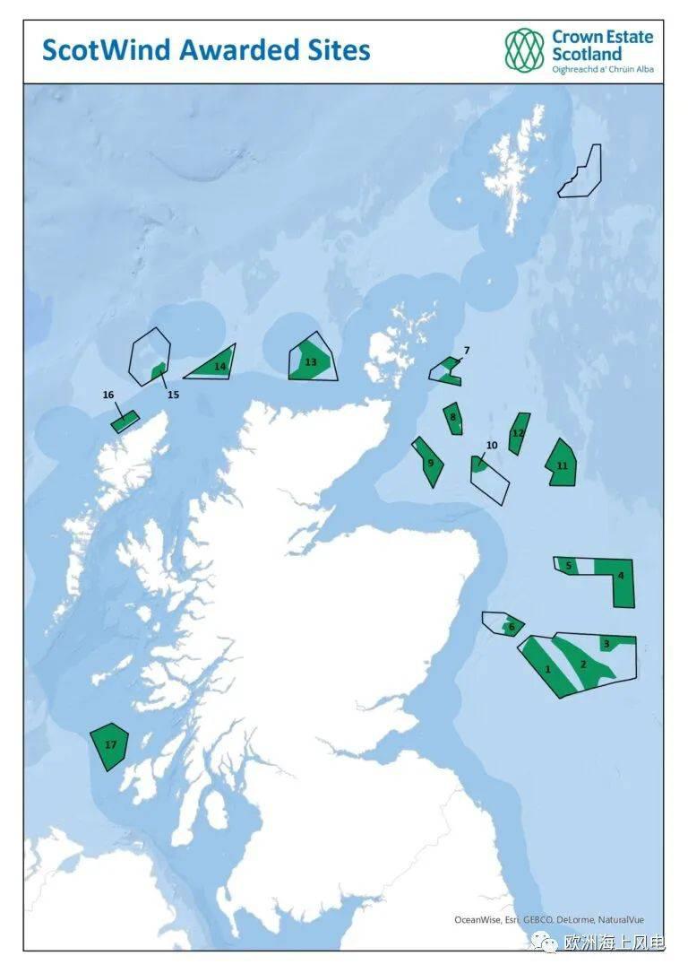 近日,苏格兰首次海上风电海域租赁结果出炉,17个项目入选,总装机容量达到了24826MW。