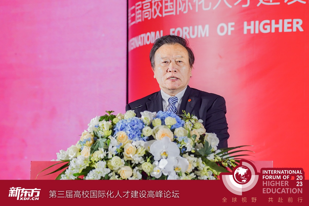 中国教育国际交流协会副秘书长安延女士致辞 新东方教育科技集团董事长俞敏洪通过视频的形式与大家分享了他对“国际化人才培养”的见解。他认为大学的国际化是国际化人才培养的前提,高校国际化不仅能够让学生掌握更多的知识,更重要的是能让学生的思想变得更加前沿、更加包容,这样我们才能逐渐和世界融为一体,与世界的发展同频共振。