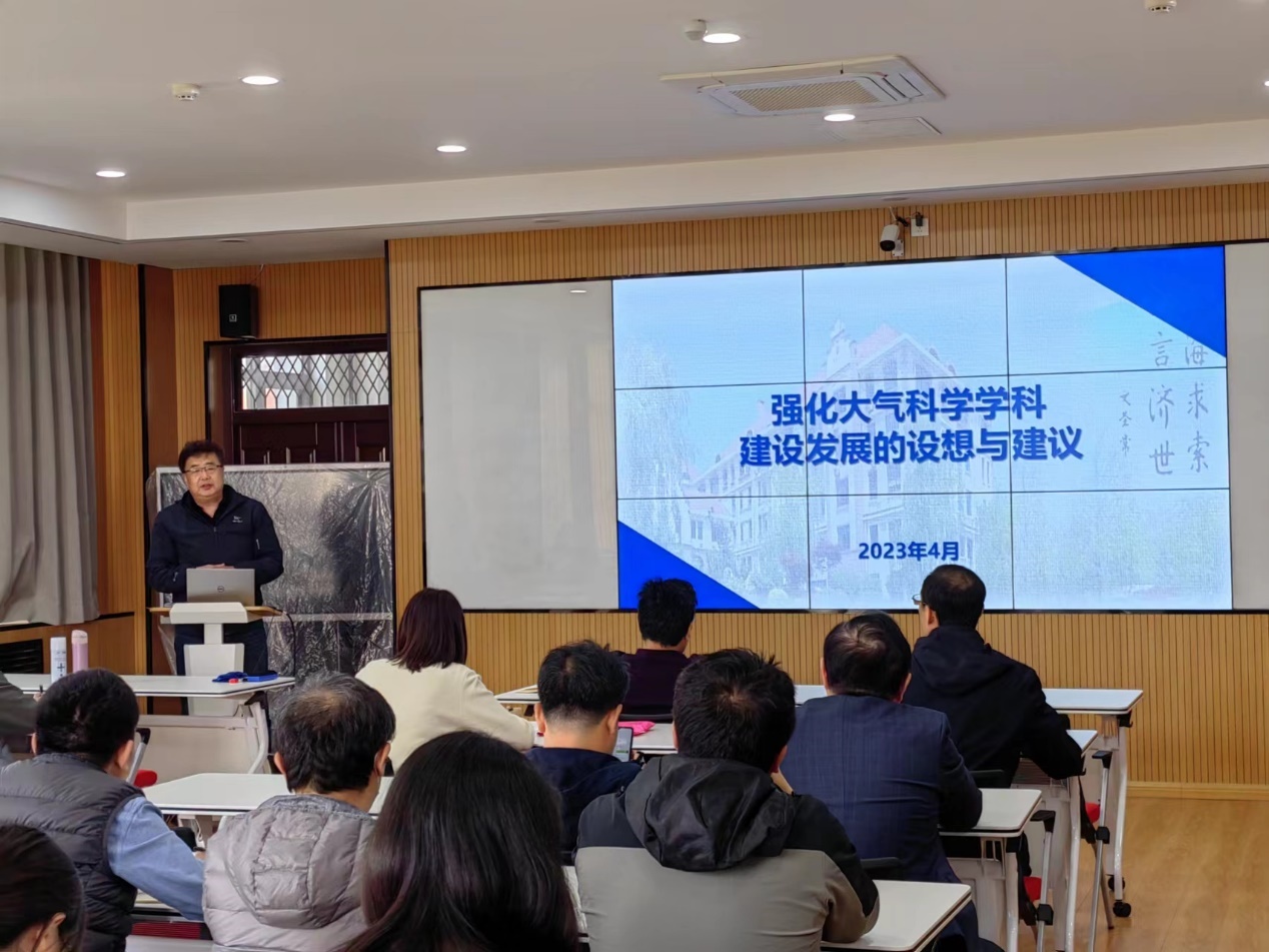 随后,系主任李春全面介绍了海洋气象学系的发展现状和进展情况。2023年,海洋气象学系在国家一流课程建设方面取得历史性突破,《科学认识天气》和《天气学原理》分别入选国家级一流线上和线下本科课程。同时,八关山海洋气象综合观测平台建设在稳步推进,课程体系建设和课程思政工作在有序开展,海洋气象学系正在科学研究和教学服务齐头并进的道路上行稳致远,进而有为。 接下来,赵传湖汇报了学校课程教学评估的程序流程、时间节点和评估重点,其中基于OBE的专业平台建设是重中之重,希望各位老师为人才培养方案的修订建言献策,并就自己负责的课程做好教学大纲的修改工作。系副主任王文彩就本、硕、博开题等相关事宜进行了汇报和交流。