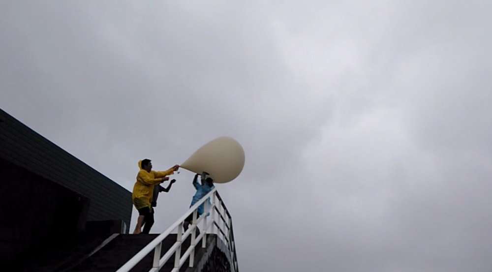 ▲2015年10月4日强台风“彩虹”登陆广东湛江,黄健和同事在60公里外的博贺基地做观测试验? ???受访者供图 旋转摇晃的镜头中,披着一次性雨衣的黄健和两名同事,手拿气球,站在高台上,顶着台风的强风暴雨,等到合适时机,一松手,探空气球就翻了个筋斗冲入乌云。 这是2015年10月4日超强台风“彩虹”登陆广东湛江前,黄健和同事在60公里外的博贺基地做观测试验的场景。 有了试验基地,有了先进的观测设备,为什么还要靠人力顶风冒雨放探空气球? 黄健说,每一次野外科学试验他基本上都会在现场。因为他要确保观测数据一定是真实准确的。 有一次台风观测过程中,他们就发现,观测平台上一个测海温的仪器测到海表温度下降了9℃。他们的第一反应就是“这个数据可能错了”,因为他们在现场感受“温度的降幅不可能这么大”。 后来通过观测试验,他们进一步发现,如果海面有飞沫、液态水滴,会影响红外遥感观测结果。“后面我们就试嘛,水滴对红外波段是强吸收。近海面飞沫比较多,导致红外信号减弱,算出来的温度就会偏低。”黄健说,“如果写论文,把‘降温9℃’写进去,不就闹笑话了吗?” 数据会说话,但是也有可能数据说了假话。因为在观测过程中,很多细节和因素都会影响数据的准确程度。 “先进的观测设备也会有各种天气和环境条件下的适用性问题,还需要通过多种手段相互验证。每次试验我们都会用不同探测原理的设备做同步观测。”黄健说。 4 传承 有些故事,自己就有生命力。你说给我,我也会说给他。