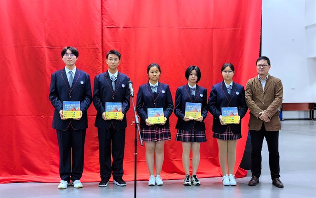 上海海洋大学知联会会长、海洋科学学院副院长胡松教授向临港中学生代表赠送科普图书