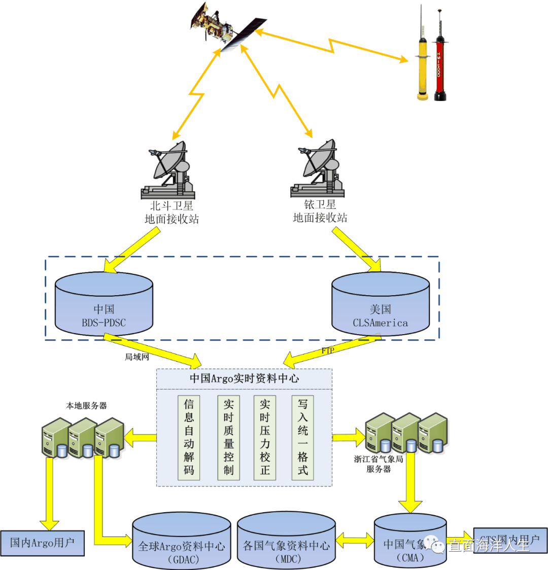 陆上数据处理与分发单元主要负责对国产剖面浮标的观测数据进行实时和延时质量控制,确保符合Argo计划对海洋环境资料观测精度的要求,通过互联网和GTS实现与国内外用户数据共享,需要自主研发。该单元将会对所有的包括通过北斗和铱卫星传输的剖面浮标观测数据,经信息自动提取(包括浮标技术信息和观测数据)后,按照国际Argo资料管理组规定的程序对压力进行实时校正,并对温、盐度观测剖面和卫星定位等数据进行实时质量控制,一般要求在获取浮标资料的24小时内完成,其中通过北斗卫星传输接收的观测资料,争取在获取2小时内即可完成。