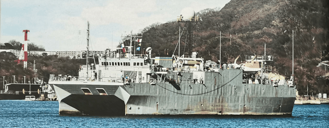 图1 SURTASS最初是为了弥补SOSUS的不足,安装在T-GAGS系列水声监听船上,包括“胜利”(Victorious)级监听船“能干”号(Able,T-AGOS 20),靠船艉拖曳的水下SURTASS阵收集水声数据。