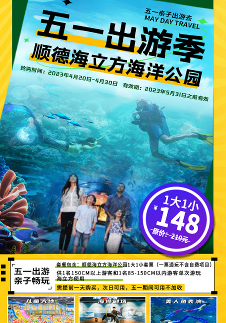 粉丝福利 抢购时间:即日起-售完即止 使用时间:次日起-5月31日 *免预约,五一均可使用 顺德海立方 ? 148元抢购1大1小家庭套票?? 1大指:1名1.5m以上成人 1小指:1名85cm-150cm的儿童