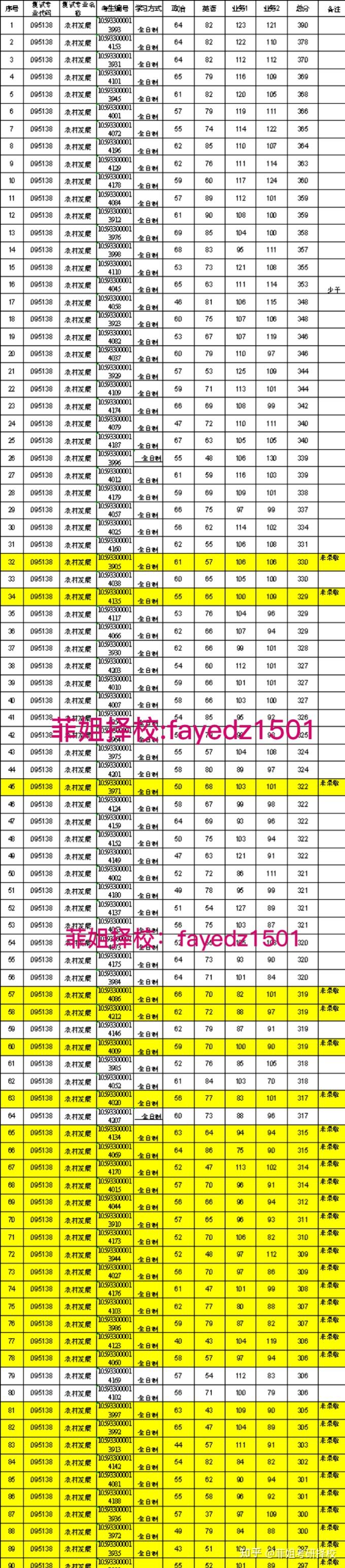 2、初试参考书及大纲: (342)农业知识综合四 1.毕世杰 主编,高等教育出版社出版:发展经济学。 2.傅新红 主编,高等教育出版社出版:农业经济学。 3.王洪波,卢润德,李松青,张莹,蒋志兵,蔡翔 编著,机械工业出版社出版:管理学。 (869)农业推广学 1. 汤锦如 农业推广学(第三版). 北京:中国农业出版社,2015.12 2. 高启杰 农业推广学(第三版). 北京:中国农业大学出版社,2013.12 试卷结构和题型: (342)农业知识综合四 【试卷结构】 1、试卷满分及考试时间 本试卷满分150分,考试时间为180分钟。 2、答题方式 答题方式为闭卷、笔试 3、试卷内容结构 发展经济学约占总分的33.4%(50分左右) 农业经济学约占总分的33.3%(50分左右) 管理学约占总分的33.3%(50分左右) 4、试卷题型结构 名词解释 30分 简答题60分 综合题60分 (869)农业推广学 【试卷结构】 1、试卷满分及考试时间 本试卷满分为150分,考试时间为180分钟。 2、答题方式 答题方式为闭卷、笔试。 3、试卷题型结构 名词解释(30分) 问答题(80分) 论述题(40分) 二、 复试概况 1、复试分数线: 广西大学2023农村发展分数线:30/45/297 2、复试形式及内容 我院23考研采用远程网络复试方式 复试从以下方面考核: 思想品德考核(本项总分值 100 分) 重点考察内容:考生的政治态度、思想表现、道德品 德、遵纪守法、诚实守信等方面。 思想政治考核单独计分,不计入复试总成绩,思想政 治考核不合格(低于 60 分)不予录取。 专业素养考核(本项总分值 100 分) 此项考核含三项内容:外语听说能力、专业基础能力、 科研潜力及综合素质。考核时间一般不得少于 20 分钟。 ①外语听说能力考核不少于 5 分钟,包含考生自述 以及与评委的外语交流;主要考查考生是否具备阅览外文文 献,了解国际学科学术前沿的外语听说读写能力。本项分值 20 分。 ②专业基础能力考核结合复试科目进行,时间一般 不少于 10 分钟;重点考察内容:是否对专业基本概念、基 本理论有准确理解;是否能用专业知识分析社会生活或生产 实际的具体问题;是否能概括所学专业的知识体系;是否对 8 学科发展的前沿领域有一定了解等。本项分值 50 分。 ③科研潜力及综合素质考核时间一般不少于 5 分钟; 重点考察内容:是否在学术发展和科研选题上有一定思考; 是否对预期的研究生学业发展有明确的规划和目标;是否对 学术选题或研究提出有见解的个人学术观点或研究方向等; 是否逻辑思维清晰,具备良好的语言沟通能力、文字表达能 力;是否具备独立思想见解和独立的生活能力;是否有积极 乐观心态和抗挫折的心理承受力等。本项分值 30 分。 3、复试成绩计算 复试成绩标准分(满分 100 分)=专业素养考核分 4、总成绩计算方法: 考试总成绩(分)=初试成绩标准分*50%+复试成绩标准 分*50% 其中: 一志愿考生初试成绩标准分 初试成绩标准分=总分(满分 500 分)/5; 三、 录取学生分析 1、 复试录取数据统计(以下数据来源2023年) ![]() 2 复试及录取名单(23考研) ![]() 3、复试录取情况数据分析(23考研数据) ![]() (1)、广西大学农村发展23录取总分279-390,复试人数90,录取人数60,复录比1.5。虽然复试刷人不少,但是从上面分析看,复试一般刷掉低分。相对很公平。 (2)、 广西大学农村发展两门专业课,复试考生平均分103/100,专业课不算特别好高,但是在农学这个专业里是不算压分的,属于中等水平。 |