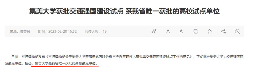 以下文章来源于“软科荐校”。软科荐校,传播优质高等教育—— “为什么是这所学校?” 2023年2月,交通运输部下发《交通运输部关于集美大学开展通航风险分析与应急管理技术研究等交通强国建设试点工作的意见》,正式批准集美大学(简称集大)开展交通强国建设试点工作。而在这之前获批交通强国建设试点单位的十所高校,无一不是“双一流”。 ![]() 不熟悉集大的人,或许会对交通运输部的这个决定百思不得其解。而那些了解集大的人,却绝不会感到意外。 104年前,华侨领袖陈嘉庚在家乡厦门创办集美学校师范部,扬帆起航;1994年,集美师范高等专科学校、集美航海学院、集美财经高等专科学校、厦门水产学院、福建体育学院合并组建集美大学,乘风破浪;今天,集大已成长为福建省“双一流”建设高校,交通运输部与福建省、自然资源部与福建省、福建省与厦门市共建高校,目标星辰大海,未来山高水长。 集大,实至名归。 ![]() 突破,乘风破浪 “现在的成果只是一个起点,并不是终点。在集大,我还有很大的发展空间。”80后青年学者祁第如是说。 2022年9月30日,祁第教授所带领的科研团队为集大实现了Science论文第一完成单位的历史性突破。题为《气候变化导致1994年到2020年北冰洋快速的年代际酸化》的研究论文,作为我国大陆地区近20年来在海洋科学领域以第一单位和第一作者身份发表的仅有的几篇Science文章之一,引起了国际学术界广泛关注和巨大反响,也让世界的目光,顺着北极一路向南,落在了位于厦门的另一“集”上。 ![]() 祁第的突破是近年来“集大速度”的一个缩影。“十三五”以来,集大加快建设“工海”为特色的一流大学,以诚毅精神为根,与时代共振,在发展的快车道上一路疾驰,所向披靡。 强援“极”多。2019年,集大引进著名金属材料科学家、抗疲劳制造缔造者赵振业院士,实现集大全职院士零的突破。2020年,俄罗斯工程院外籍院士、俄罗斯自然科学院外籍院士谷宇教授也来到了集大,与集大同发展、共呼吸。如今,集大已拥有院士13人(全职2人)、国家级高层次人才33人、省部级高层次人才156人,群贤毕至,少长咸集。 ![]() 硕果“极”丰。2021年8月,王志勇教授申报的“大黄鱼适应无鱼粉饲料的遗传基础解析”助集大实现国家自然科学基金重点项目零的突破。同年9月,黄阳平教授申报的《基于城市规模和产业集聚协同演进的中国城市效率提升路径研究》项目获得国家社科基金重点项目立项,集大在短短一个月后,又取得了国家社科基金重点项目零的突破。2022年,集大39个项目获国家自然科学基金委立项资助,获批经费1444万元,财经学院也再次收获国家社科重大项目,稳扎稳打,步履不停。 整体实力进步“极”快。2021年,植物学与动物学学科为集大首开纪录,进入ESI全球前1%。而今,只用了短短两年的时间,集大便已拥有了植物学与动物学、工程学、农业科学3个进入ESI全球前1%的学科。2022爱思唯尔“中国高被引学者”榜单中,集大的李清彪教授、陈全胜教授入选。又如集大在软科中国大学排名榜上的飞跃。2020年到2023年的软科中国大学排名榜上,集大狂飙突进,以傲然的身姿实现了惊人的71名大跃进,剑指百强。 “乘风破浪会有时,直挂云帆济沧海。”唐代诗仙的名句,穿越千年,成为了如今集大的真实写照。 育才,拔山荡海 在集大,一块已有5亿岁的南极石正静静地立在航海学院校园里,它是我国从南极带回来的第二块石头,是集大校友袁绍宏献给母校的珍贵礼物,也是集大一路人才培养的重要见证。 ![]() 南极石 图源:集美大学微信号 集大是航海家的摇篮。建校百余年,集大共培养了三万多名中高级航海专门人才,以至于在航运界,盛行着这么一个说法——中国航运人才 ,集美“三分天下有其一”。这一说法,既是对集大的肯定,也是集大人兴海报国的许诺与担当。 集大人,不惧“极”寒之地。1997年,集大走出的袁绍宏成为极地科考船“雪龙”号船长,于1999年7月驾驶“雪龙”号到达遥远的北极,参加完成了中国第一次北极考察。而在他之后,另一名集大校友赵炎平接过“雪龙”号的船舵,先后担任“雪龙”号、“雪龙2”号船长,穿梭于南极和北极之间,总航程逾40万海里。2022年10月,中国第39次南极科学考察队出发,11名集大人位列其中。寒冰,深海,集大人心怀家国,无畏无惧。 ![]() 图源:集美大学微信公众号 可科考,也可科研。2021年,中国工程院、科学院院士最终增选结果公布,集大淡渔77级校友、中国水产科学研究院、黄海水产研究所研究员陈松林当选中国工程院院士,集大身影为我国鱼类生物技术跻身国际领先行列做出重要贡献。 可科研,亦可超越极限。2021年7月31日,集大校友卢云秀获得东京奥运会女子帆板RS:X级金牌,在疾风猛浪间追逐胜利与梦想。同样是在这一年的东奥中,另一名集大校友汤星强作为中国接力队主力成员,在4×100米接力比赛中为中国队递补拿到铜牌,创造中国历史最好成绩,跑出黄种人的风采。 ![]() 东奥比赛中的卢云秀 图源:集美大学官微 目前,集大已经拥有国家级特色专业4个、国家级一流本科专业建设点25个、国家级“卓越”人才培养计划专业6个、国家级教学团队1个、国家级实验教学示范中心2个。已经培养出无数英才的集大,正在为培育未来的国家人才而不懈奋斗。 大海浩荡,而集大人浩然。天地快哉,而集大人驰骋神