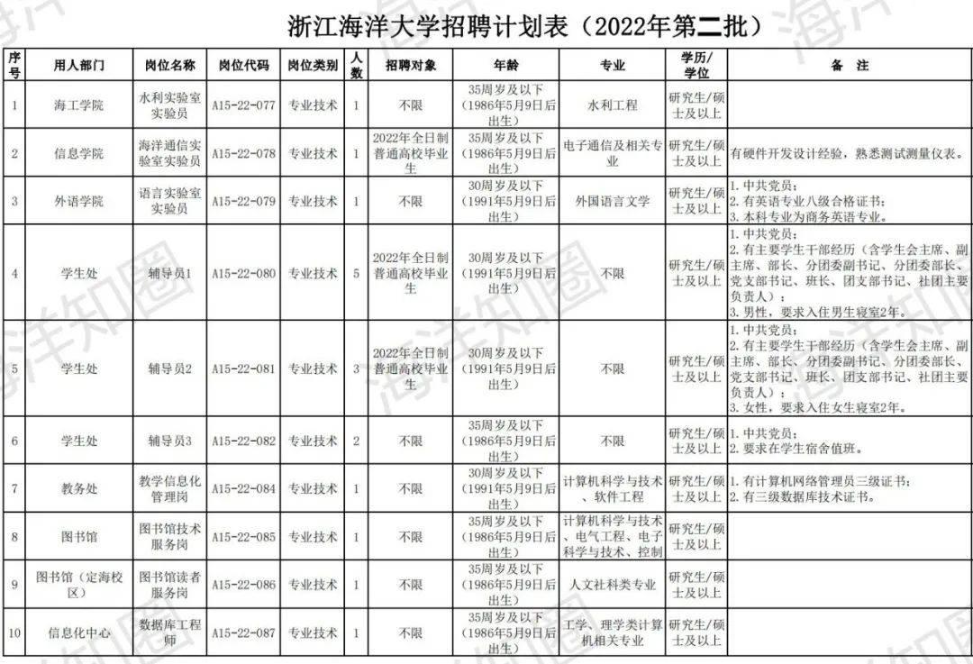 招聘22人!属于事业单位报备员额内用人!浙江海洋大学公开招聘人员公告(2022年第二批 ...