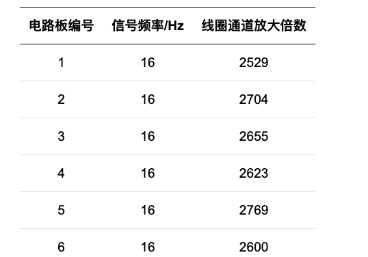 图6???5 V电源纹波测试(a) 和-5 V电源纹波测试(b)结果 3.2 模拟电路放大倍数测试 由于电极信号与罗盘线圈信号较小,普通信号发生器无法产生,且通过导线传输易混杂工频干扰,因此在电路中加入如图7所示电阻衰减电路。使用锁相放大器输出频率为16 Hz、有效值为0.4 mV的正弦信号,信号经衰减电路之后峰值为50 nV,再由锁相放大器测得经电路放大后输出的信号。将模拟电路板按1~6号进行编号,测试其对应放大倍数。所测得电极通道放大倍数如表1所示,线圈通道放大倍数如表2所示。图8为线圈通道经滤波放大后输出信号,其峰峰值为3.06 V。