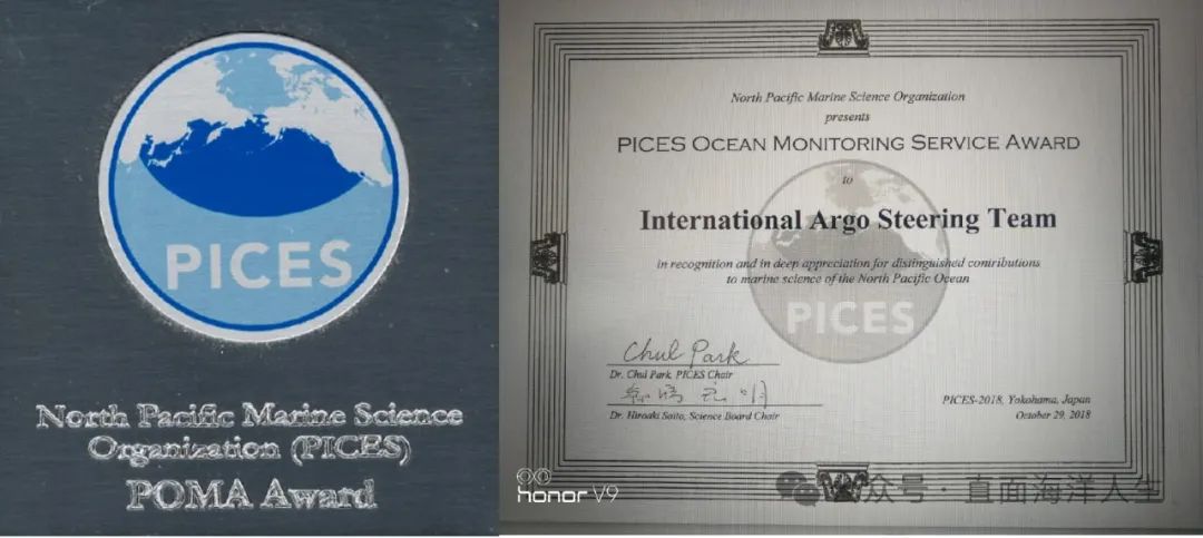 2018年10月28日,在日本横滨举行的2018’PICES(北太平洋海洋科学组织)年会上,国际Argo指导团队(IAST/AST)荣获第11届PICES海洋监测服务奖(POMA)。